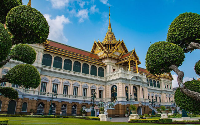 Cung điện hoàng gia Grand Palace còn được gọi là Hoàng cung Thái Lan, nằm giữa trung tâm của thủ đô Bangkok, là một quần thể các tòa nhà được xây dựng dưới thời vua Rama I năm 1782. Đây là nơi phản ánh rõ nét văn hóa truyền thống của Thái Lan với sắc vàng rực rỡ và trang trí lộng lẫy.